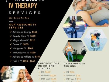 We now offer IV therapy through our partnership with Advanced Mobile IV Therapies! Everything from Immunity Boosts to Hangover Cures as well as NAD + and more! Book now in our IV Therapy Tab